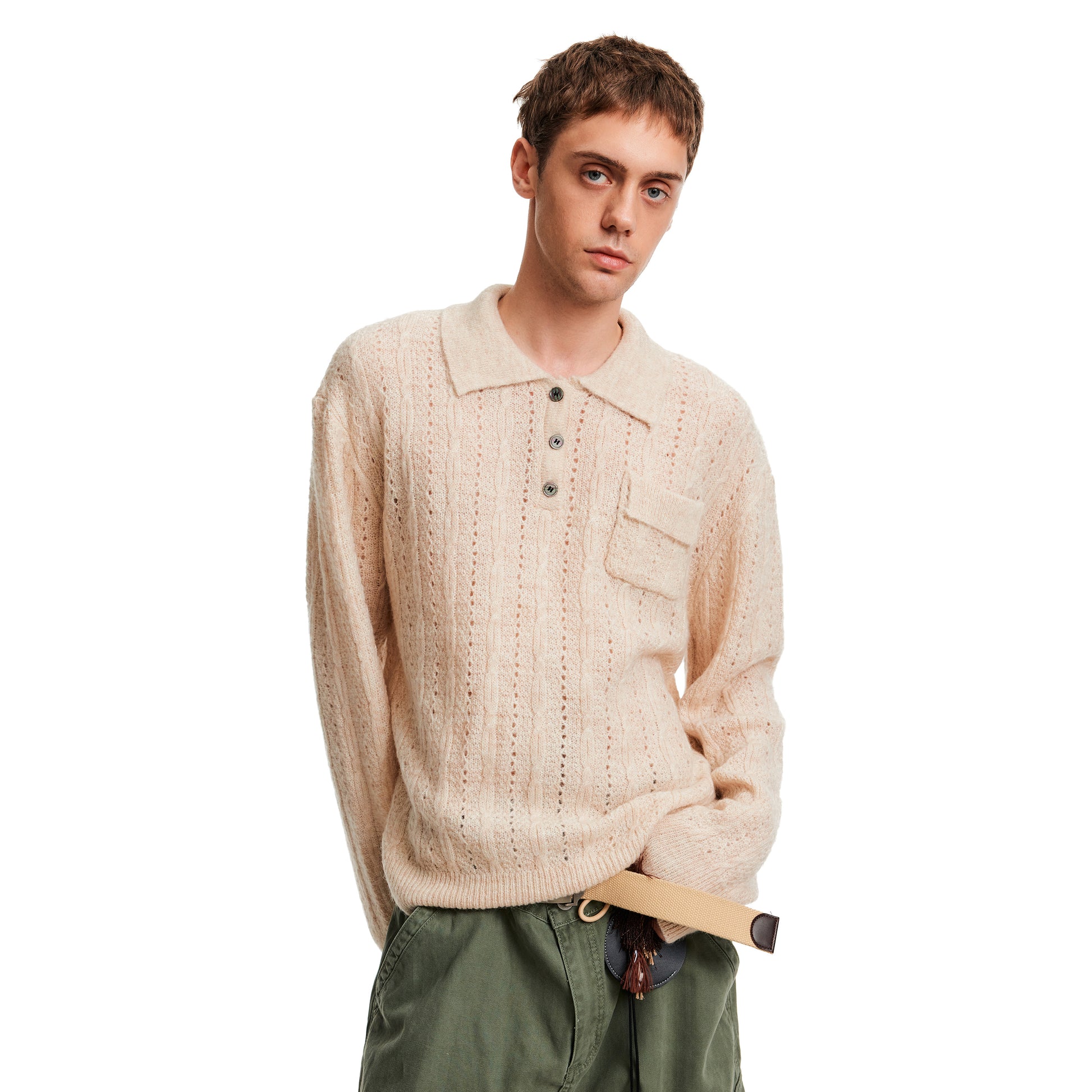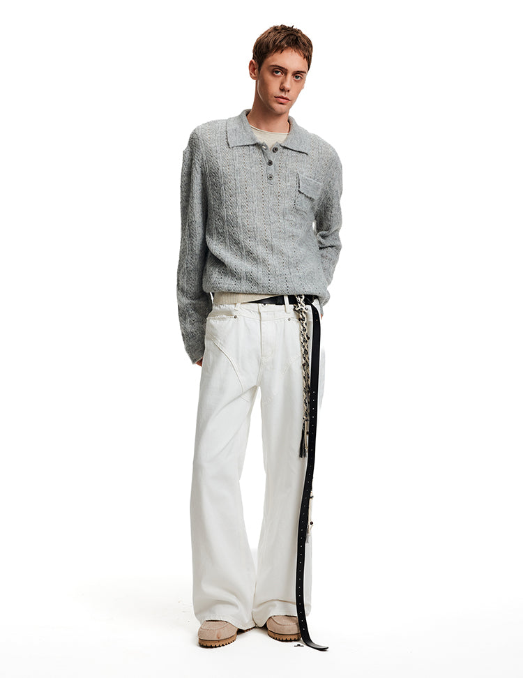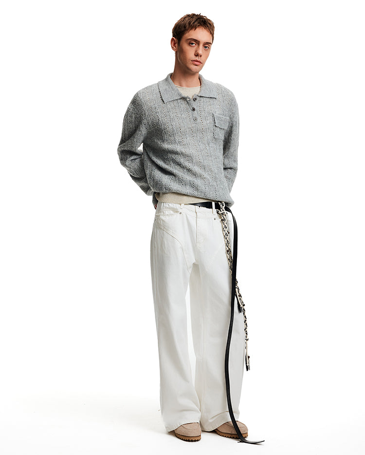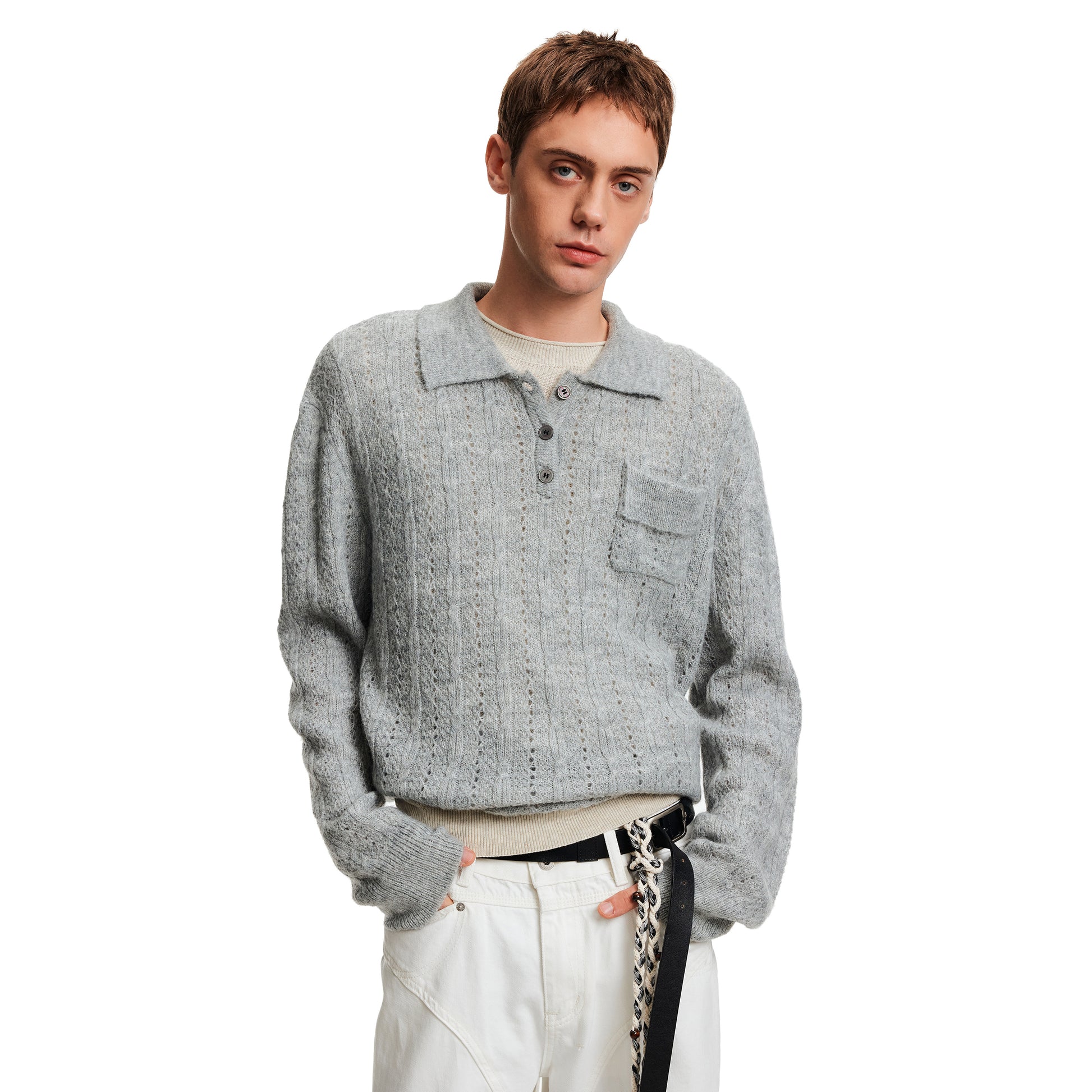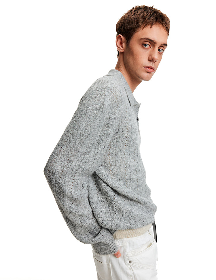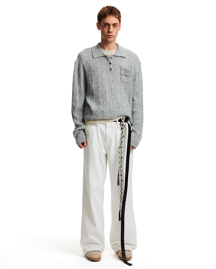MADWITCH EYELET HENLEY TOP #C2510Q25
